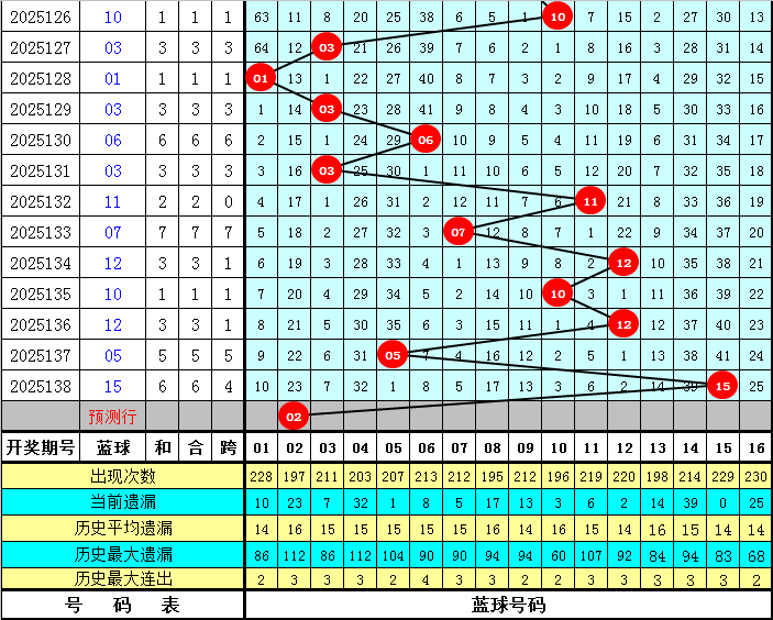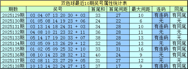 上期开奖:福彩双色球第2025138奖号为:10 13 14 23 24 27 + 15,红球和值为111,最大间距为9,奇偶比为3:3,三区比为1:2:3。