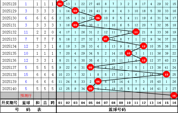 蓝球分析:上期蓝球为小 号05,最近10期大小蓝球号码分别出现5次,走势相当,本期蓝球关注大号,推荐号码16。