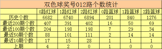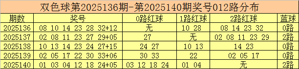 双色球第2025141期红球号码012路分析