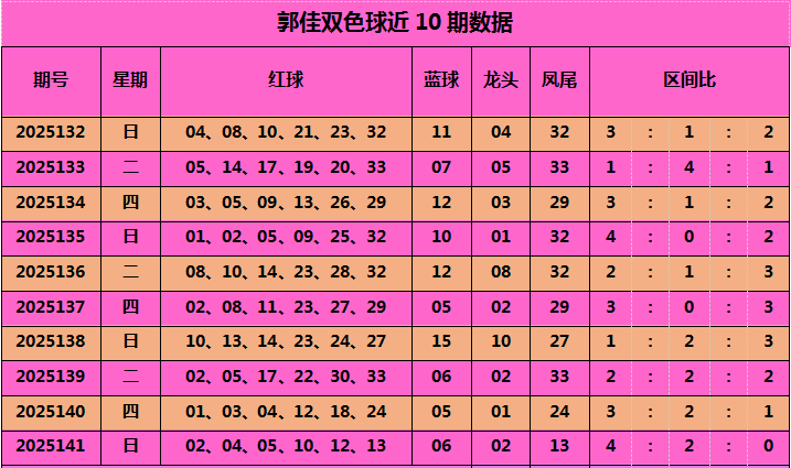 上期凤尾13,凤尾最近10期分别是32、33、29、32、32、29、27、33、24、13,奇偶比为6:4,奇数球开出次数较多,综合分析,本期凤尾参考:31。