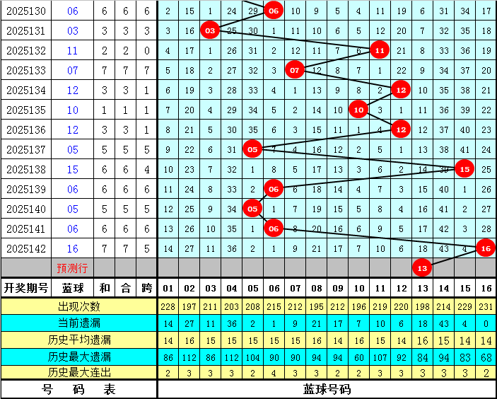 蓝球分析:最近奇数蓝球出现相对较少,本期注意奇数蓝球走热,关注03、07、13、15。