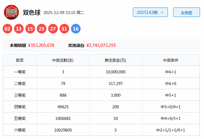 开奖回顾:第2025142期双色球奖号为02、13、15、23、27、31+16。区间比:1:2:3,奇偶比:5:1,首尾间距:29。