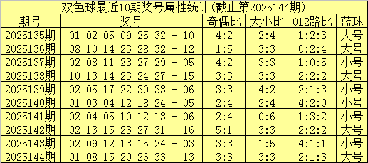 双色球第2025144期开奖号码:01 08 15 20 26 33 + 13。红球大小比为3:3,奇偶比为3:3,012路比为2:1:3,蓝球为大号。