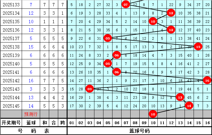 蓝球分析:上期蓝球落在第四区号码14,最近50期四区蓝球落号个数比为11:13:12:14,四区蓝球表现较热,一区蓝球表现较冷,本期预计蓝球出现在第三区,精选蓝球10。