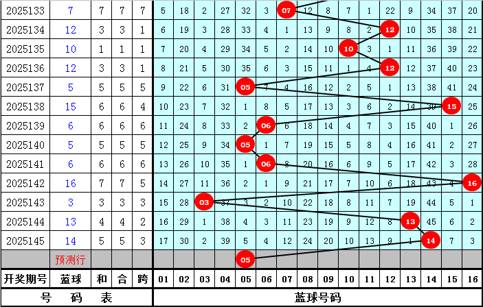 蓝球尾数分析:最近7周星期四开出5个蓝球尾数,重复蓝球尾数明显活跃,本周星期四注意蓝球尾数为近期热码尾数,参考蓝球05。