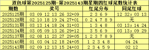 双色球第2025145期开出奖号为:11 12 15 18 25 32+14,红球尾数分布为1 2 5 8,包含同尾红球:12 32;15 25。