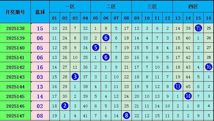 蓝球:前10期蓝球分别为:15 06 05 06 16 03 13 14 02 08,其中奇偶蓝球偶数球胜出,本期看好奇数蓝球,参考蓝球09.