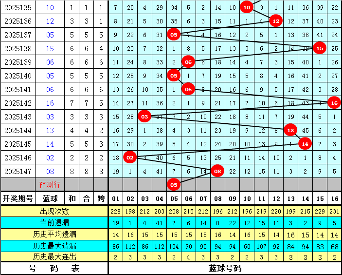 遗漏分析:最近7期红球遗漏总值分别为:6、30、10、32、29、32、19,开出4个遗漏值9以上的冷码红球,目前红球遗漏值9以上的冷码红球有5个:06、16、19、21、29,本期注意冷码解冻,参考红球号码29。