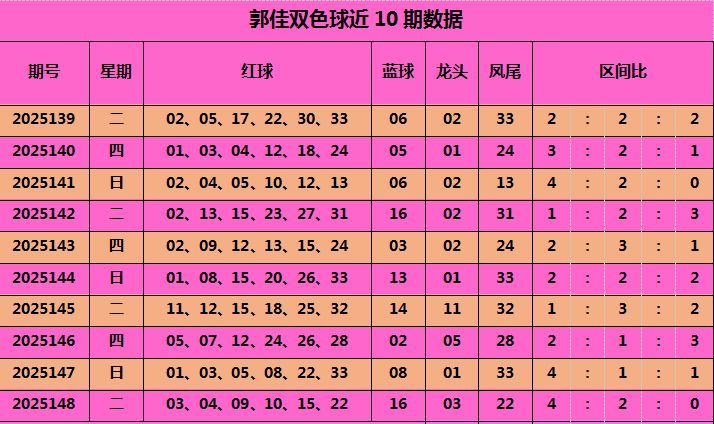 上期凤尾22,凤尾最近10期分别是33、24、13、31、33、32、28、33、22,奇偶比为5:5,奇偶数球开出次数相同,综合分析,本期凤尾参考:27。