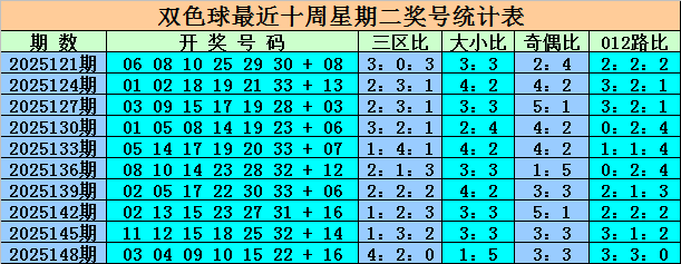 蓝球走势分析:上周二第25148期蓝球开出号码16,最近十周星期二蓝球号码大小比为5:5,奇偶比为3:7,012路比为4:4:2。本期蓝球建议侧重奇数号码,参考蓝球03、05。