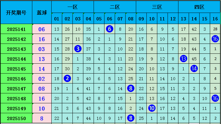 蓝球:前10期蓝球分别为:06 16 03 13 14 02 08 16 10 08,其中奇偶蓝球偶数球胜出,本期看好奇数蓝球,参考蓝球15.