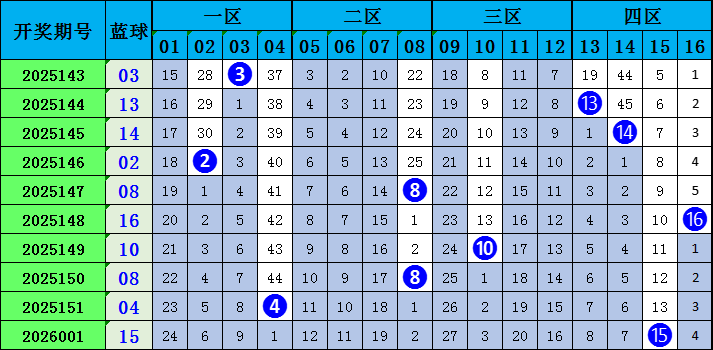 蓝球分析:蓝球上期开出大奇数号码15,前十期蓝球大小比5:5,奇偶比3:7,本期预计小数号码热出,蓝球推荐一码03。