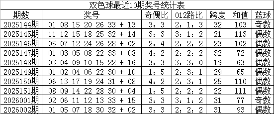 双色球第2026002期开奖,红球:01、05、07、18、30、32;蓝球:02。其中红球和值为93,跨度为31,奇偶比为3:3,012路比为2:2:2,蓝球为温码、偶数。