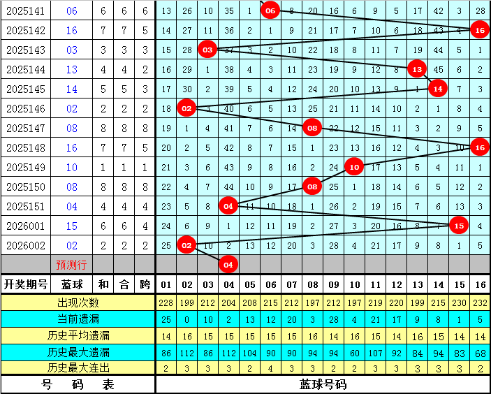 五码蓝球:04 06 10 11 16