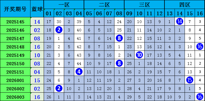 蓝球上期开出的是16,为大偶数号码。