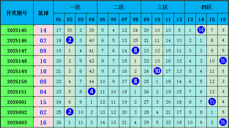 蓝球:前10期蓝球分别为:14 02 08 16 10 08 04 15 02 16,其中奇偶蓝球偶数球胜出,本期看好奇数蓝球,参考蓝球09.