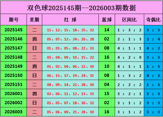 双色球第2026003期开奖:本期开奖号:05 06 09 21 28 30。蓝球:16,奇偶比为3:3。