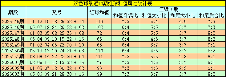 福彩双色球第2026004期红球和值综合分析: