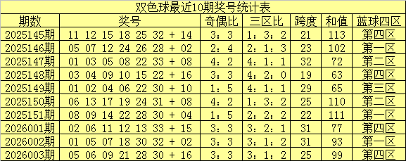 南华天第2026004期双色球区间号码个数统计分析:(红球:01-11为一区,12-22为二区,23-33为三区;蓝球:01-04为一区,05-08为二区,09-12为三区,13-16为四区)
