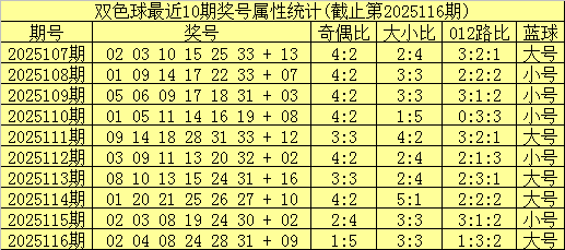 双色球第2025116期开奖号码:02 04 08 24 28 31 + 09。红球大小比为3:3,奇偶比为1:5,012路比为1:3:2,蓝球为大号。