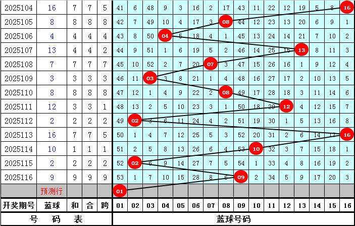 蓝球分析:上期蓝球为大号09,最近10期大小蓝球号码分别出现5次,走势相当,本期看好小 号蓝球,参考蓝球01。