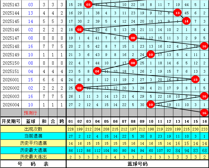 蓝球:上期蓝球号码为10,开出偶数、大号,蓝球最近7期大小比为4:3,本期注意大号蓝球出现,蓝球关注16。