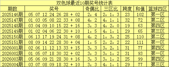 南华天第2026005期双色球区间号码个数统计分析:(红球:01-11为一区,12-22为二区,23-33为三区;蓝球:01-04为一区,05-08为二区,09-12为三区,13-16为四区)