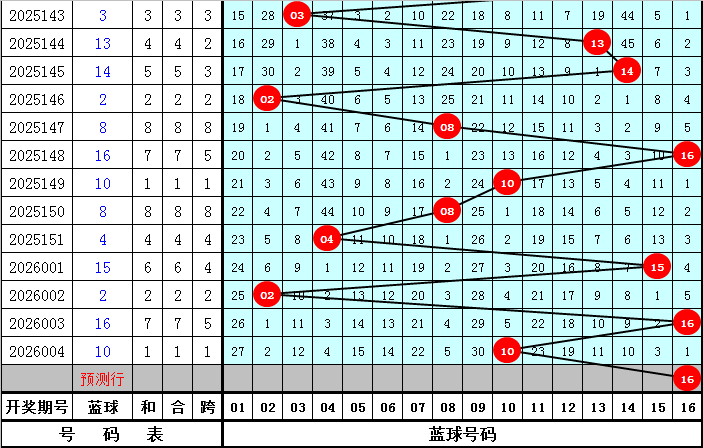 蓝球推荐:最近10期蓝球开出尾数:0、2、6、8出现2次,4、5出现1次,1、3、7、9出现0次,本期蓝球看好开出偶数号码,关注蓝球16。