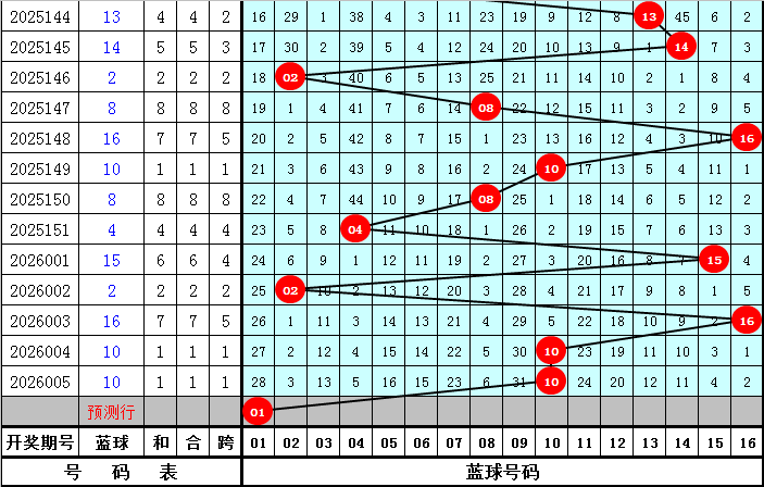 蓝球分析:上期蓝球落在第三区号码10,最近50期四区蓝球落号个数比为12:12:15:11,三区蓝球出现较多,本期预计蓝球出现在第一区,精选蓝球01。