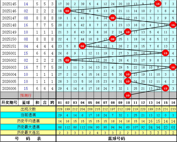 蓝球分析:蓝球大号近期表现活跃,本期重防大号蓝球热出,关注蓝球10、11、13、16。