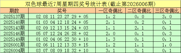 福彩双色球第2026004期(上周星期四)奖号为03 07 08 09 18 32 + 10,红球奇偶比为3:3,蓝球开出大号。