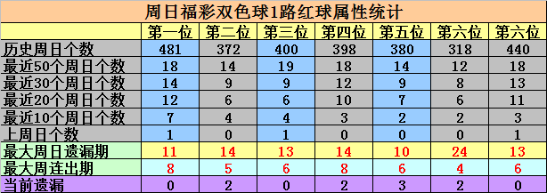 第四位:上周星期日奖号为:27,是0路红球,当前该位2路红球连续轮空3个星期日,本周星期日继续放弃2路红球,参考号码24。