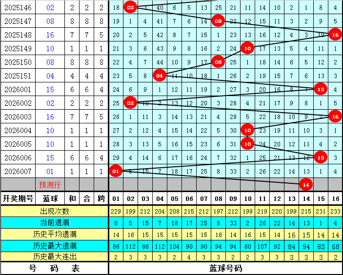 蓝球分析:上期蓝球开出号码01,下降14个点位,最近10期蓝球号码升平降分别为:降、降、降、升、降、升、降、平、升、降,本期防蓝球号码上升,一码蓝球关注14。