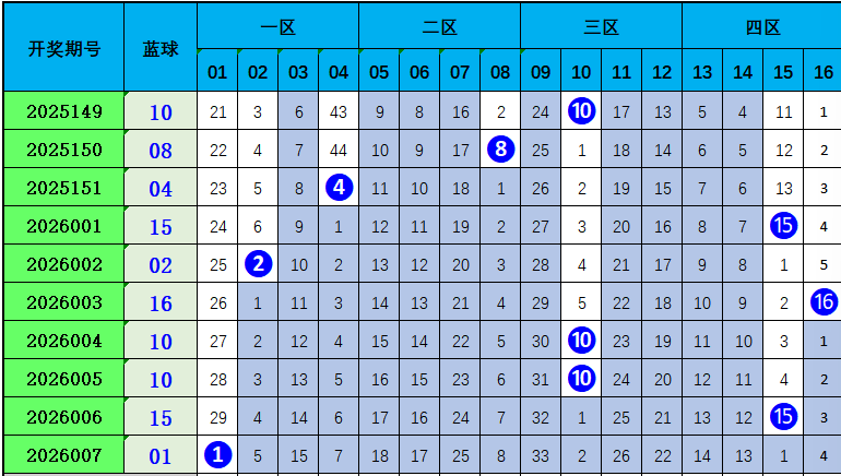 蓝球号码分析:蓝球开01。属于奇数。近10期奇偶3:7,偶数号码热度较高。本期预测蓝球开出偶数号码06。
