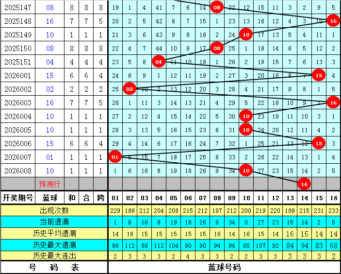 蓝球分析:最近偶数蓝球走势非常热,本期看好偶数蓝球继续热出,参考08、10、12、14。