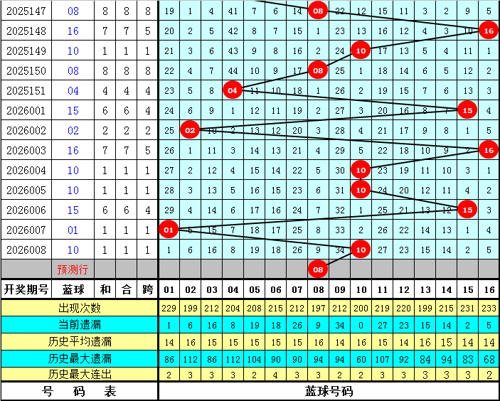开奖回顾:双色球第2026008期开出奖号:06 09 16 27 31 33 + 10。其中,红球号码012路比为4:2:0,其中0路号码表现活跃。蓝球号码为1路号码。