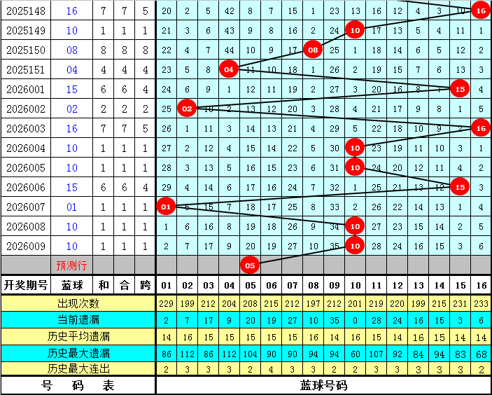 蓝球分析:上期蓝球开出号码10,为重号,最近10期蓝球号码升平降分别为:降、升、降、升、降、平、升、降、升、平,本期看好蓝球下降,独蓝参考05。