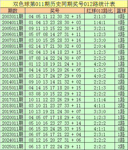 福彩双色球第2026011期历史同期王守礼012路奖号遗漏分析: