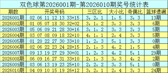 2026010期双色球奖号开出:04、09、10、15、19、26 + 12,红球奇偶比为3:3,三区比为3:2:1,大小比为2:4。