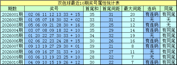 上期开奖:福彩双色球第2026010奖号为:04 09 10 15 19 26 + 12,红球和值为83,最大间距为7,奇偶比为3:3,三区比为3:2:1。