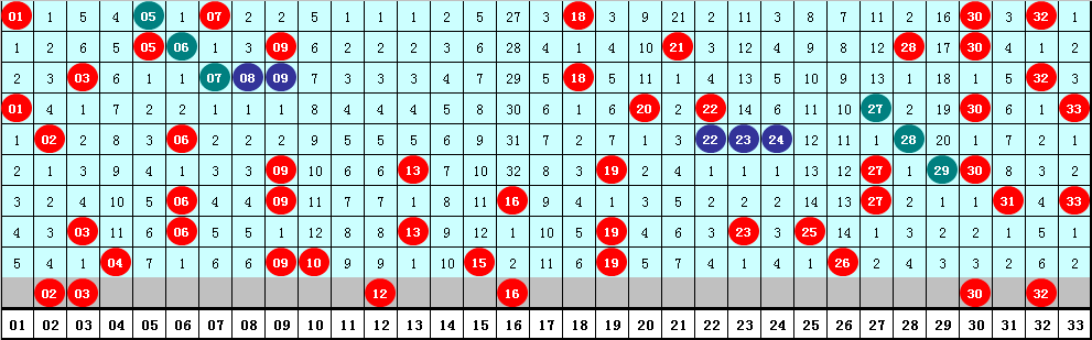 2、凤尾分析:最近十期凤尾号码分布在25-33区间,走势比较集中,凤尾奇偶比为4:6,奇偶凤尾开出次数基本相当,本期看好凤尾为偶数,关注号码32。