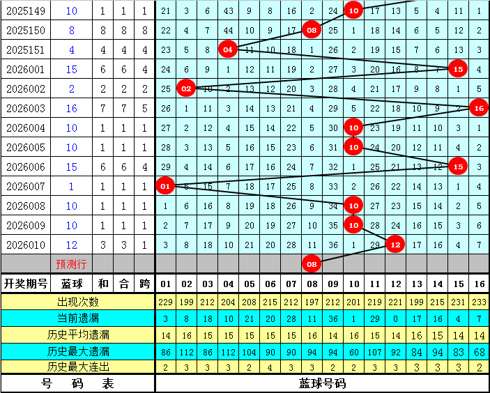 第一位:在历史第011期同期开奖中出现范围为01-10区间,平均值为5,奇偶比为11:12,目前奇数号码连续遗漏了4年,今年同期重点关注奇数号码回补,推荐号码01。